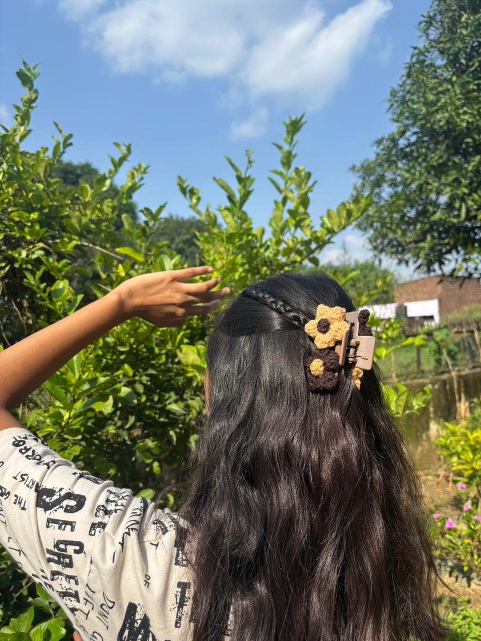 Adorable medium-sized crochet claw clips with a double flower design.